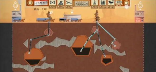 这款游戏大体延续了端游的核心玩法:玩家需凭借初始的少量资金开展前期建设,前往油田进行勘探作业,尽快搭建起属于自己的油井;同时还要在城镇里推进技术升级等相关操作。当构建好完整的开采链条后,还得学会调控石油的供需关系——游戏里石油的价格主要由原油的运送量决定,若长期原油运输量偏少,油价便会上涨,反之则会下跌。想要获取更多收益,就得多动脑筋;此外,和镇上居民打探消息、参与竞标以掌握石油话语权等行为,归根结底都是为了让石油卖出更高的价钱。