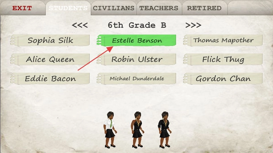 2、在学生选择界面,选择【Estelle-Benson】等学生角色,进入游戏场景。