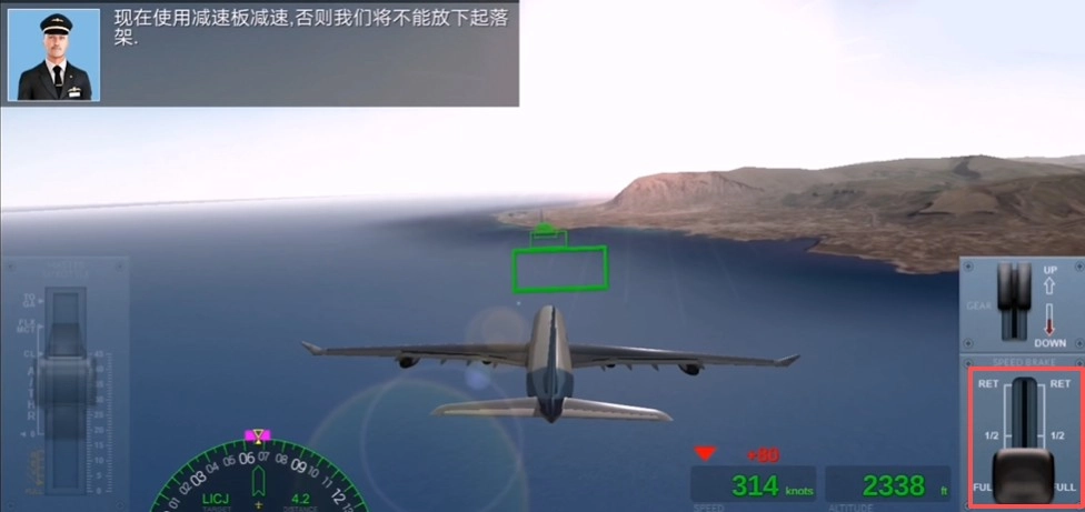 5、使用减速板减速,否则飞机无法放下起落驾