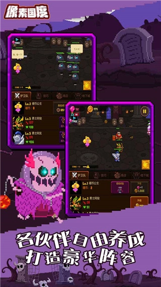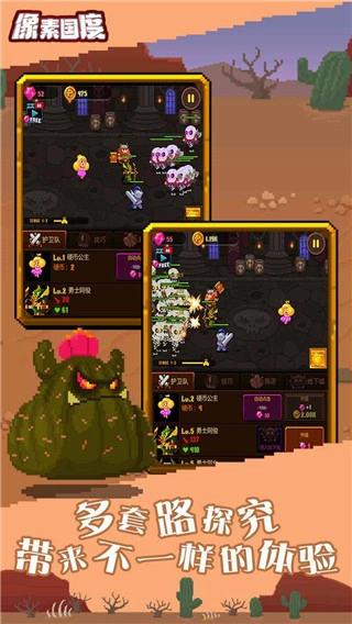 在《像素王国》这款游戏里,你得在像素王国中招募各式各样的守卫英雄。当你横扫地下城时,一段与龙和怪物展开围攻对抗的故事也将随之开启。