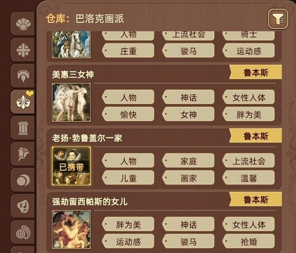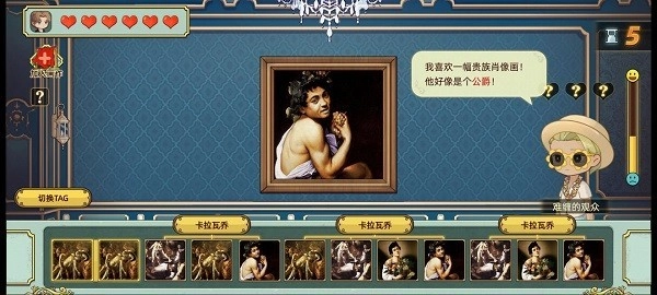 2. 领略绘画艺术的魅力。除了完成关卡挑战外,游戏的另一核心玩法是品鉴我们收集到的世界名画。我们可以为每一幅收集到的世界名画添加标签。在这一过程中,除了性别等基础标签外,还需要在游戏里尽可能多地搜集各类资料,梳理相关文献信息,最终完成对每幅画作的全面解析。唯有如此,才能真正体会到绘画艺术的精髓与美感。