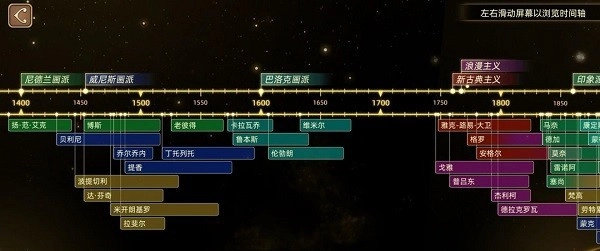 最神奇的地方就是能按年代查询流派、画家和作品,一目了然。