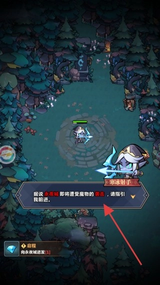 2、根据红色箭头所指的方向,点击相应的NPC或任务区域,开始进行游戏任务,推进游戏的剧情发展。