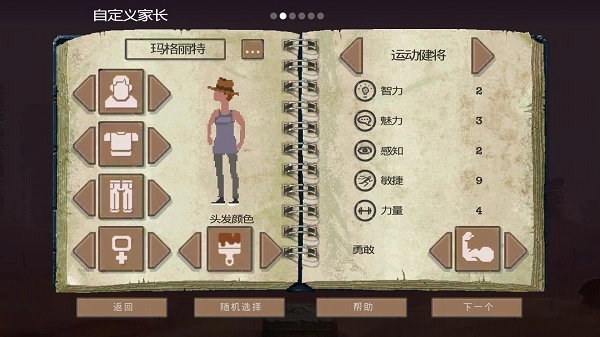 然后是家庭成员的选择,两大人加两小孩,我简单介绍一下基础属性: