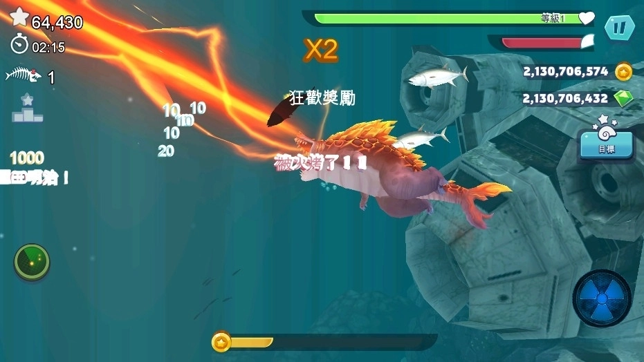 血浴:购买解锁后,可使游戏画面的血腥程度显著提升,鲨鱼捕食的场景也会更具恐怖感,无疑是重口味玩家的心头之选。