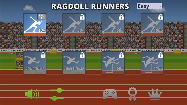 1、打开ragdoll runners游戏,进入游戏后可以选择游戏难度,点击右上角的选项进行挑选,新手玩家建议先从最简单的难度开始练习;
