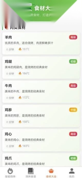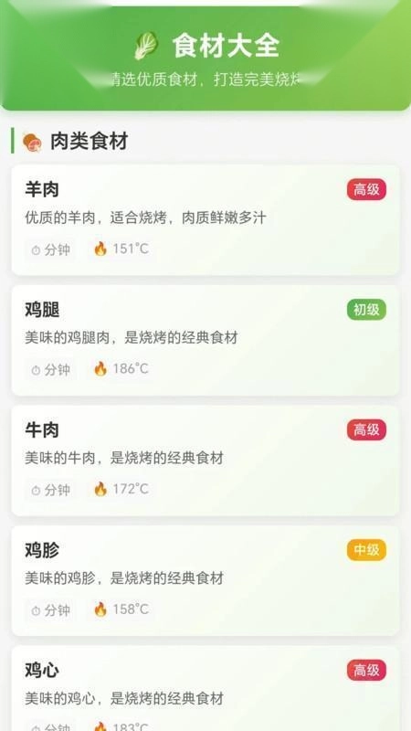 食材大全里详细说明了如何判断食材的新鲜度,能帮用户选到最新鲜的食材,让烧烤的味道更有保障。