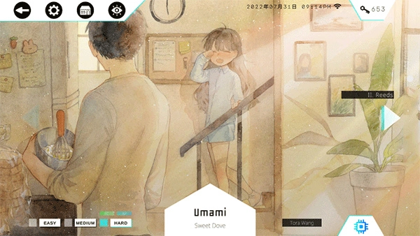 3、要依据每段音乐的节奏来操作,在点击屏幕的同时,聆听着耳边动人的音乐,沉浸于游戏剧情的回忆之中。