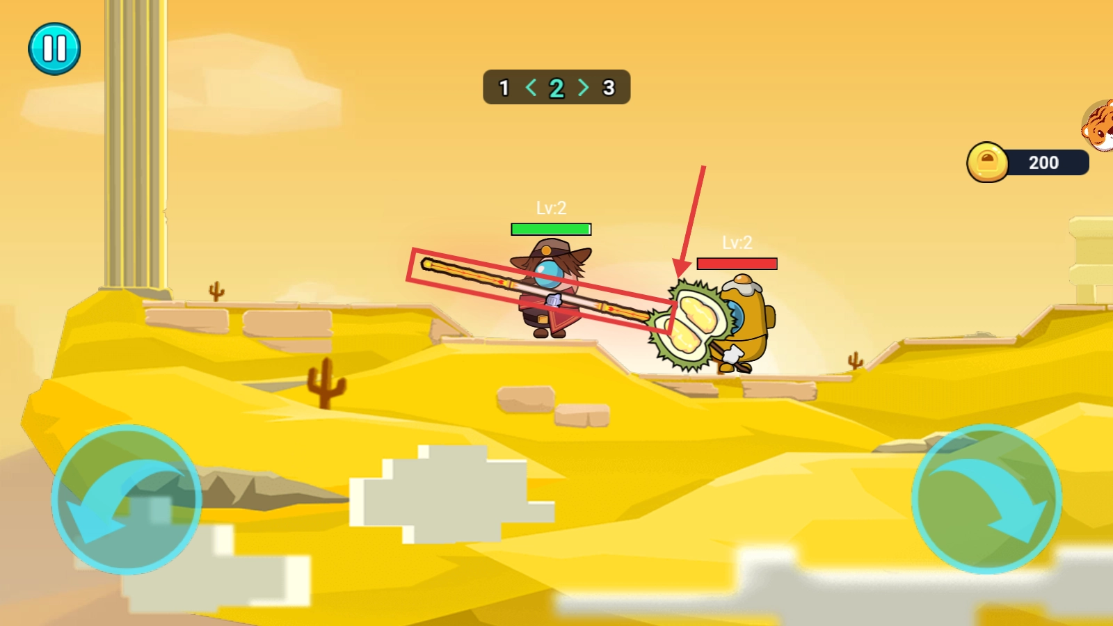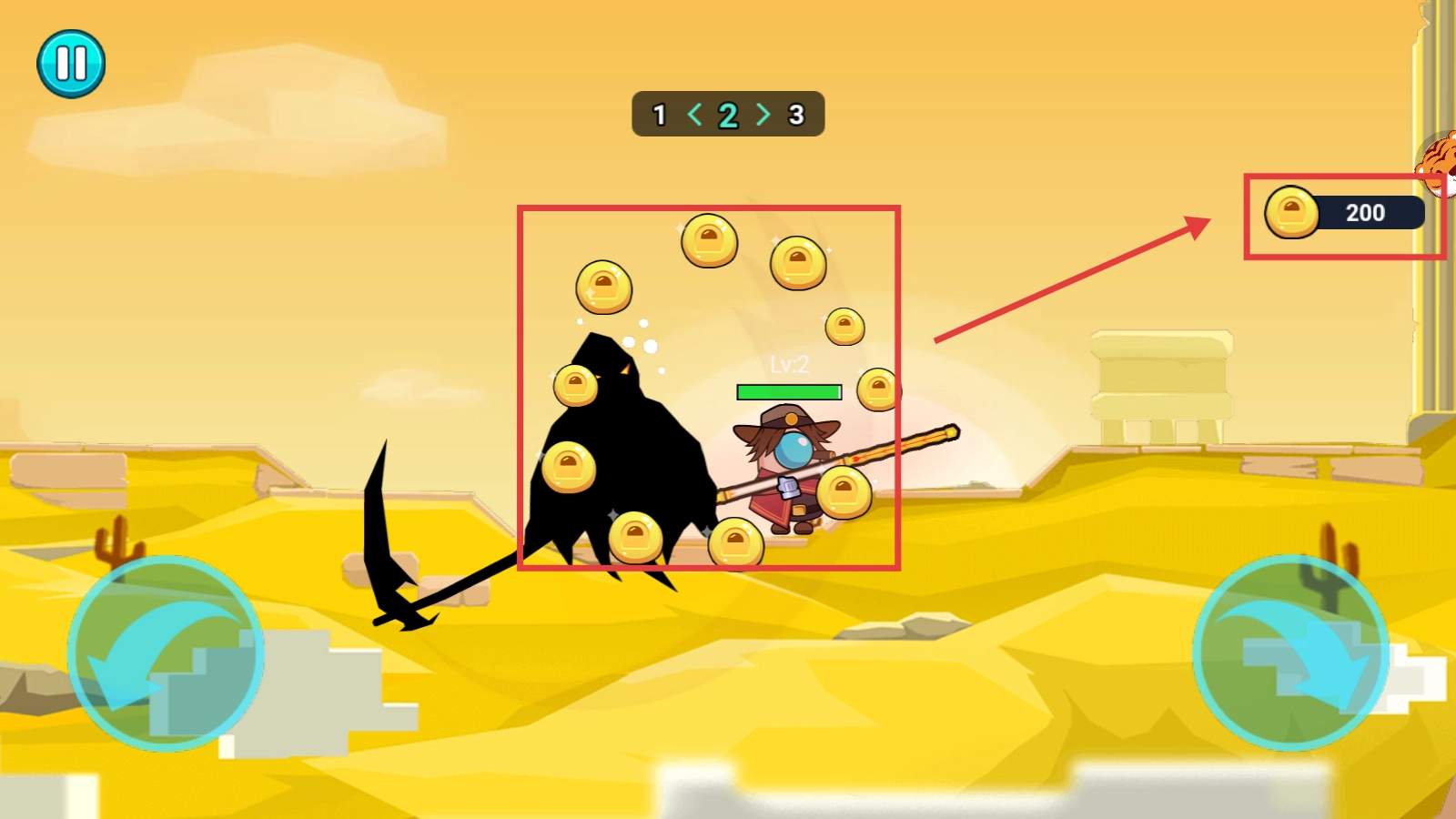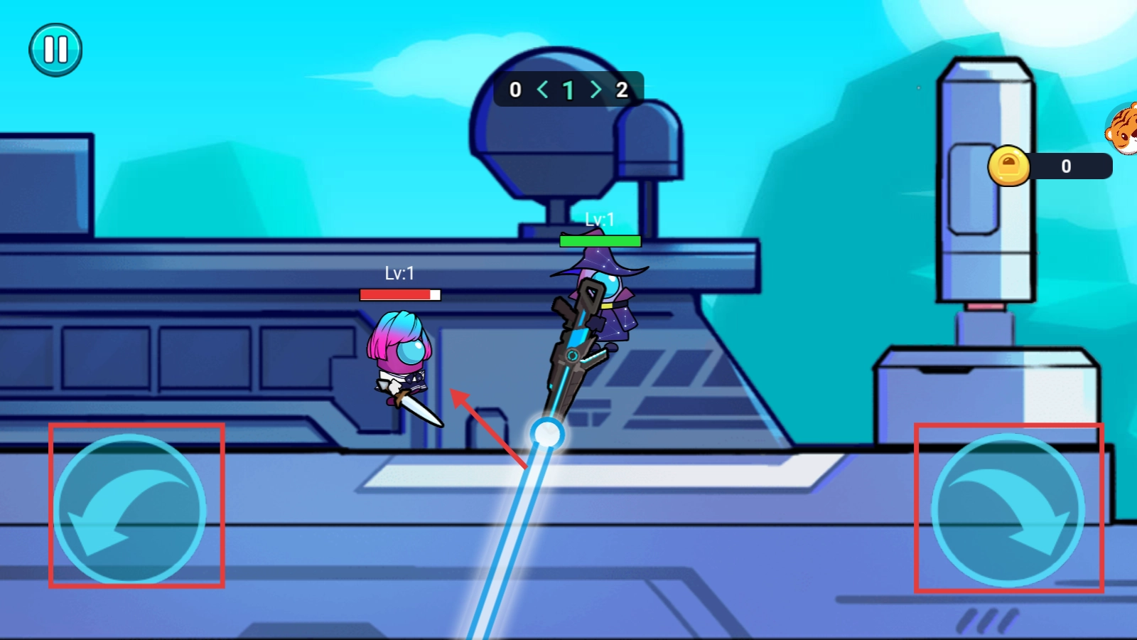 2、在战斗时,点击左右两侧箭头按键,灵活移动角色并释放攻击,将敌人打得落花流水吧。