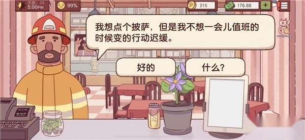 11、消防员不愿行动迟缓:纯素食披萨的组成是白面饼,再搭配蘑菇、橄榄、洋葱、青椒、凤梨、罗勒叶和玉米(未解锁的食材无需考虑)