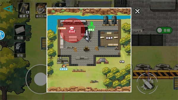 6、点击左侧的地图按钮可以查看当前地图里的撤离点位置,以及boss所在区域。