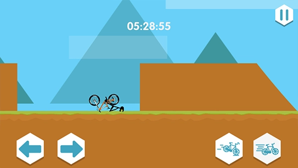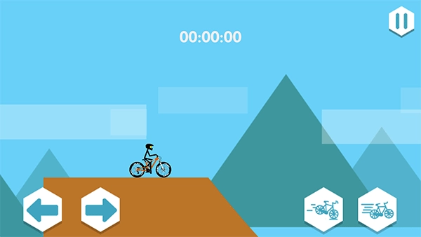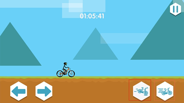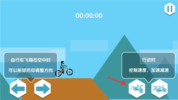 1、点击“开始游戏”按钮进入游戏界面,右侧的图标分别对应自行车的刹车和行驶功能,可用于控制车辆的加速与减速。