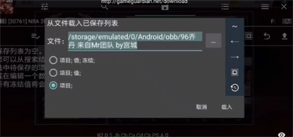 5、选择nba2k20,随便载入一个面补脚本,选择项目再载入。