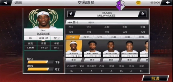 3、在这里可以看到球员阵容,选择你要交易的球员。