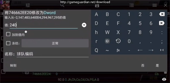 6、找到相对应的球员编码,把编码值改为240,点击是即可。