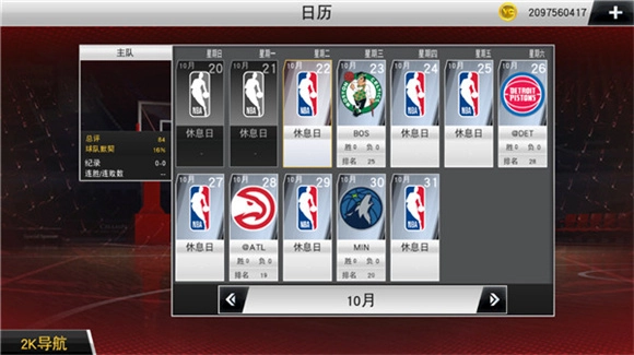 1、首先我们进入到的王朝模式中,再点击左下角的2K导航按钮。