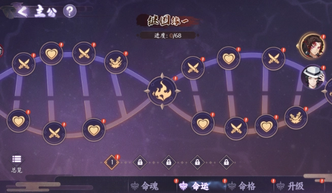 1、每位主公都有专属的命运,命运中包含多个节点。