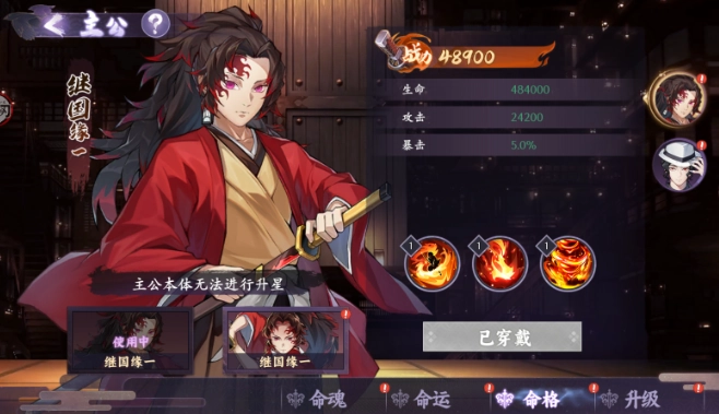 1、本体命格拥有3个技能,可以通过命运进行升级。