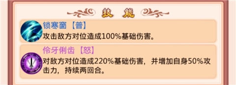 技能主要有三类:一是普通技能,这类技能会在每个回合自动触发释放;二是怒气技能,当怒气值积攒到满额状态时,玩家可以手动选择释放该技能;三是天赋技能,此技能需要卡牌完成进阶操作后才能解锁获得,属于被动生效的技能类型。
