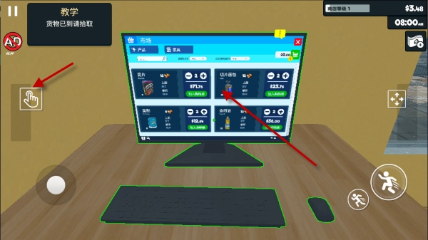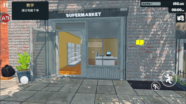 进入游戏后,我们可以按照左上角的教学指引,先到超市里的电脑上完成网上订货这一步骤。