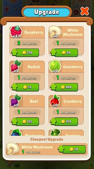 6. 游戏的整体玩法是根据上方提示判断所需水果,然后进行种植与回收操作,直到完成任务并获取金币。