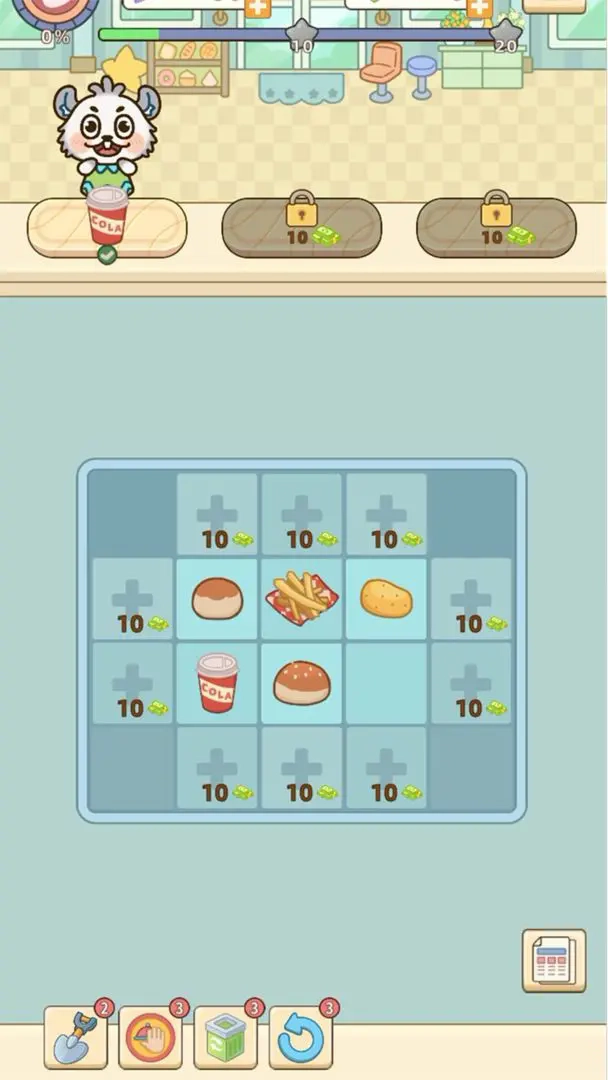 3.通过消除获取食材,制作各式菜品满足顾客需求。