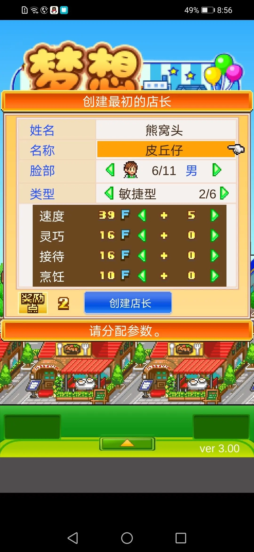 游戏店的店长推荐敏捷型,服装店的店长推荐敏捷型,汉堡店的店长则推荐烹饪型。