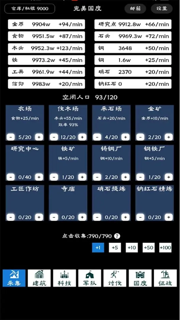 《完美国度攻略》是一款别具特色的文字模拟经营放置游戏。玩家将从一座小城起步,逐步打造专属于自己的理想国度。游戏里,你可以通过钻研科技树解锁各类强力技术与兵种,还能借助不同建筑物生产多样资源,进而合成建造具备特殊效果的建筑。提升生产力与科技水平、持续增加人口、优化整体经营效果,是这款游戏的核心目标。要是你对这类游戏感兴趣,不妨来体验一番!