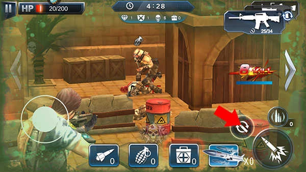 4、同时点击换弹按钮即可快速退回至障碍物中
