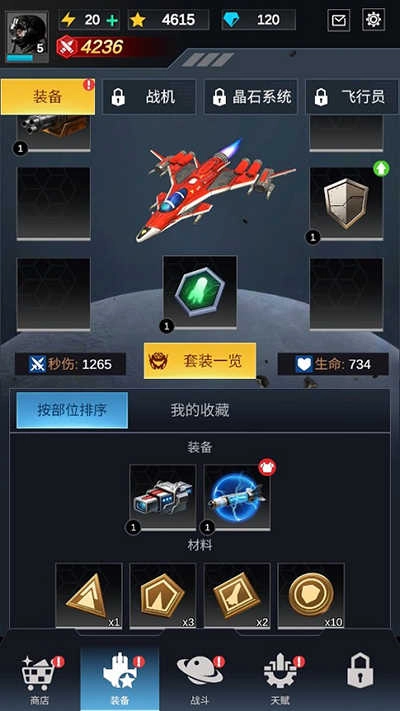除了天赋系统外,装备系统同样是提升战机战斗力的关键途径;玩家能够收集各类装备来强化战机;另外,战机型号的挑选、晶石系统以及飞行员等元素,也都可供玩家进行培养与提升。