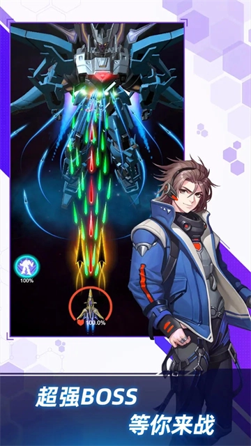 游戏采用竖屏战斗界面,通过拖动屏幕任意位置来控制战机左右摆动,同时还能加速或后退来躲避敌人的子弹;