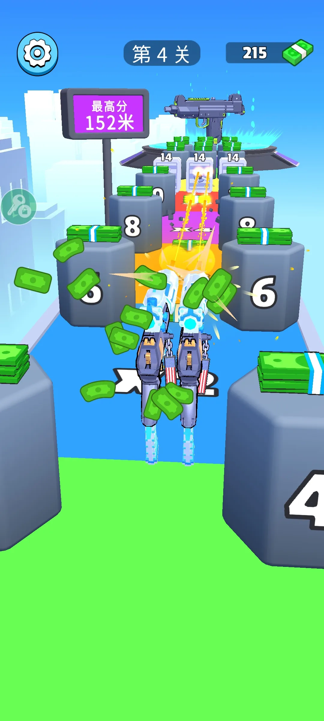 2、左右移动该枪械,点击将前方的靶子击打完,靶子和障碍都代表着美金,击打的越多,奖励越丰厚。