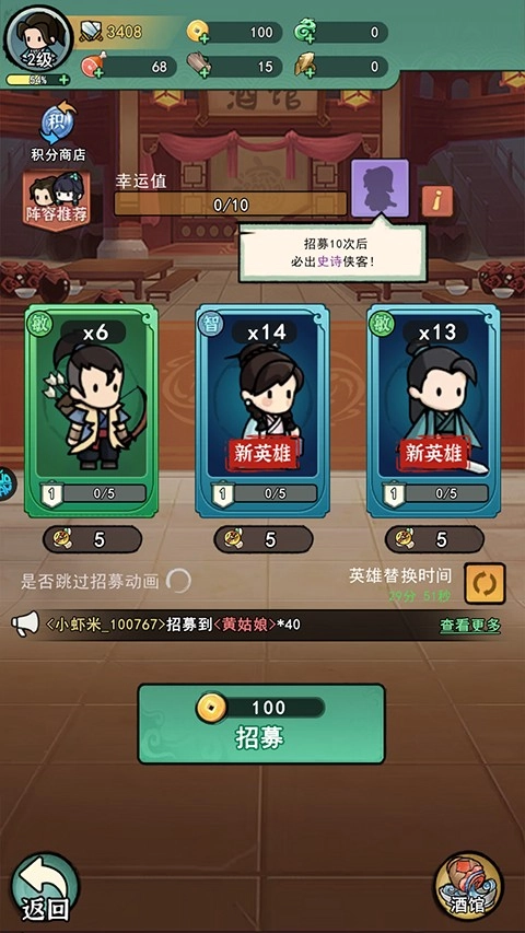2、游戏里获取的金币能够用于招募新角色,不过也存在无需招募的情况,比如可以在路边捡到角色。