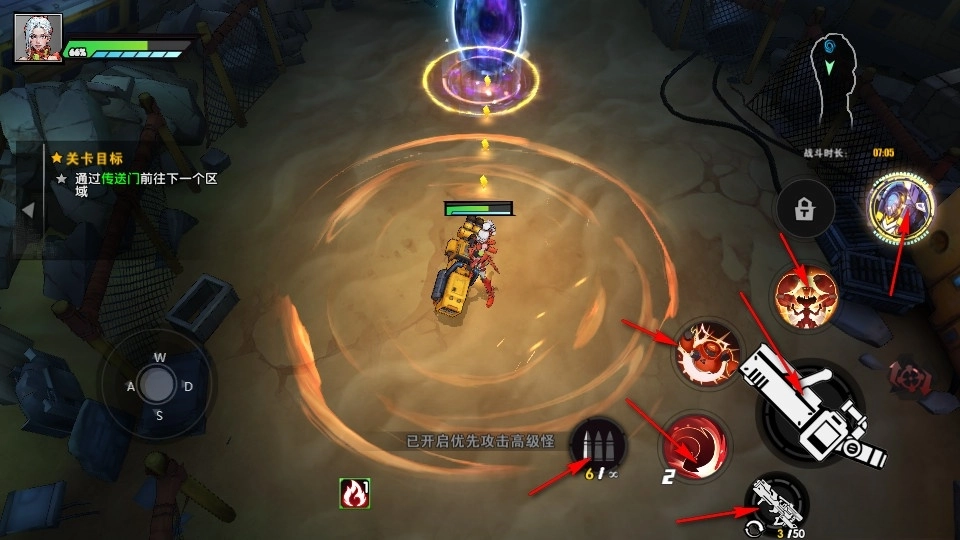 游戏中玩家需要操作角色清除虫族,左下方是移动键可以进行角色移动。