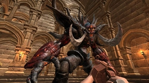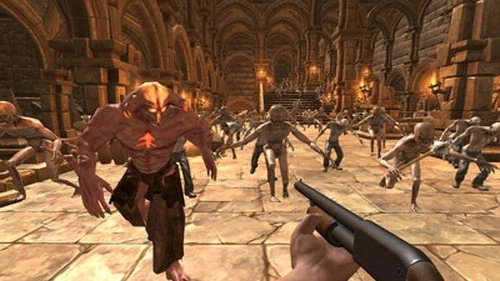 2、数量庞大的敌人也是游戏引擎强大性能的直观展现,《英雄萨姆》(Serious Sam)里的怪物虽称不上是目前射击游戏中刻画最精细的,但它们的外观表现相当出彩,同时具备流畅自然的动画效果,当被玩家击中时,身体上还会溅射出大量逼真的鲜血。