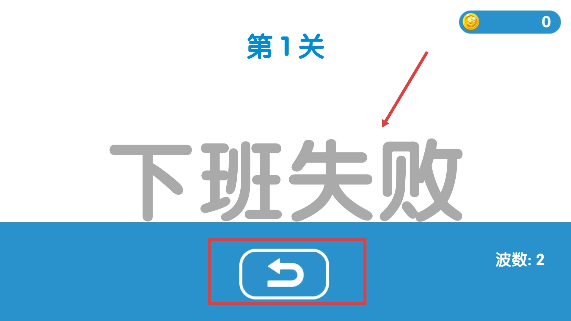 4、若出现【下班失败】提示,点击重新开始按钮再次挑战关卡,积累经验以顺利打卡下班。