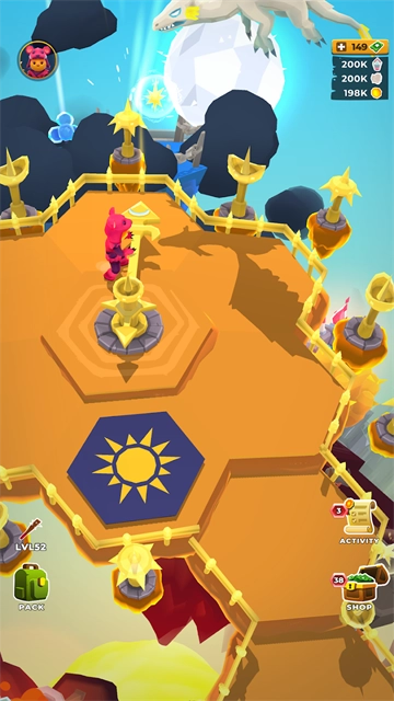 1、独特视觉体验:以简单3D建模为基础,搭配光影效果,圆形地面设计带来真实且新奇的视觉感受,上帝视角让玩家对星球全貌一目了然。