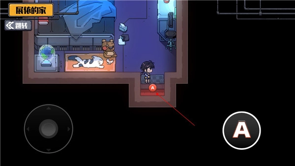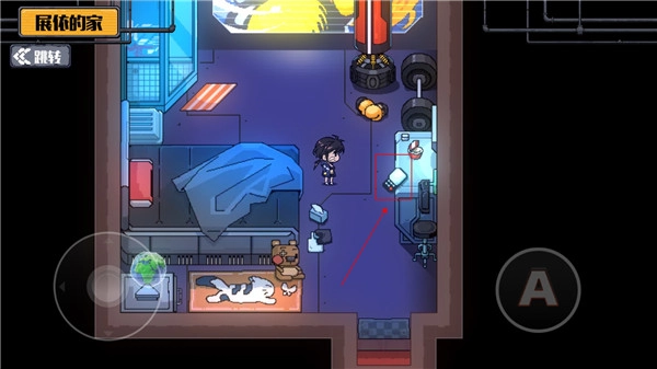2、主角为了参加拳赛,打算先到桌子旁的智能终端那里,结果发现终端已经损坏,得去修炼铺把它修好才行。