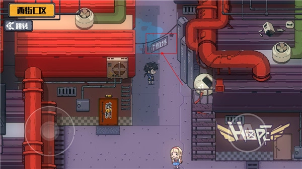 4、出门后顺着路牌指引一直往上走就能到修理铺。路上碰到其他角色,只要靠近就能和他们对话,从他们那里能知晓更多剧情细节。