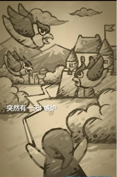 3、剧情结束后就会在村庄场景开启游戏,点击上方的小鸟进行射击,要是没击中的话它还会再次出现;