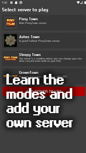《Ponytown 小马镇中文版》是一款自由度拉满的像素风沙盒角色扮演游戏——在这个世界里,你绝非局外的观望者,而是小镇里真切存在的居民:你可以化身为拥有独特个性的小马,在开放的天地间耕种劳作、结交好友、搭建家园、探索冒险、装扮造型,甚至能参与到随天气变化而动态调整的农耕系统中。这里不存在固定的任务流程,唯有无限的可能性等待发掘;没有“必须完成通关”的硬性要求,只有让人“舍不得退出”的沉浸式日常体验。上线就能迅速融入情境,下线后依旧心心念念——这才是真正让人欲罢不能的像素童话世界。