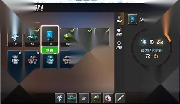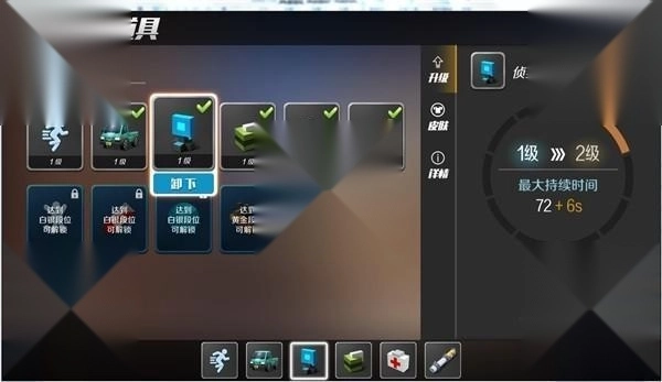 目前达到白银段位可解锁“跳高”“生命上限”“雷达”三张道具卡,黄金段位则能解锁“巡逻犬”“阻挡箱”两张道具卡。
