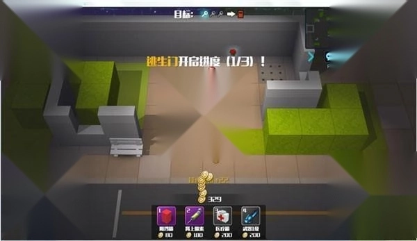 整个场景会有2-3个逃生大门(根据不同地图区分),解锁任意大门即可从大门逃出场景。