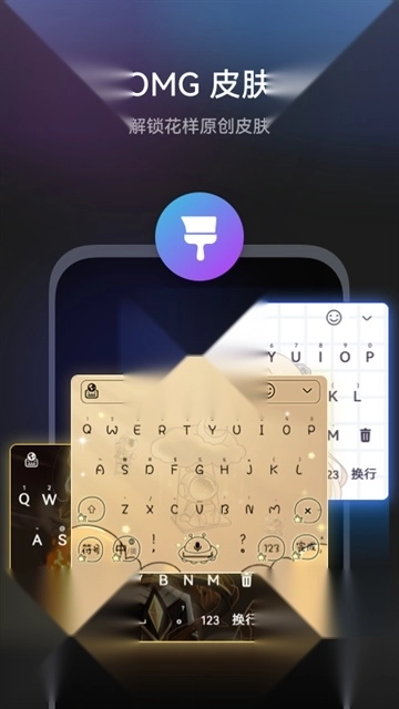 1、提供丰富的肌肤选择,用户可根据喜好定制,构建专用的输入法界面。