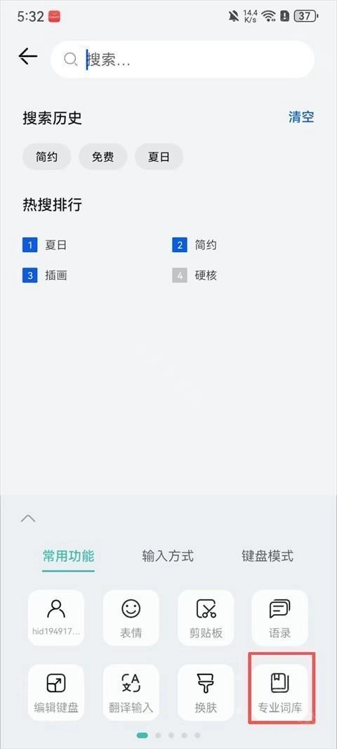 2、点击【常用功能】-【专业词库】。