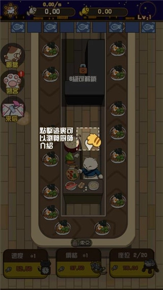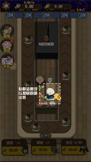 1.点击猫咪,可以加快厨师出餐的速度。