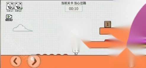 3、接着重复刚才的操作,一名玩家跳到第三层,另一名玩家则留在第二层。(注意踩虹色按钮可以增加时间)