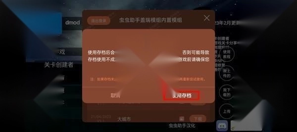 3、完毕之后,直接点击进行使用存档,然后回到游戏大厅;