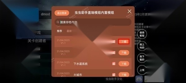 2、它会弹出一个盖瑞模组的内容模组端口,搜索或者选择你想要的模组进行;