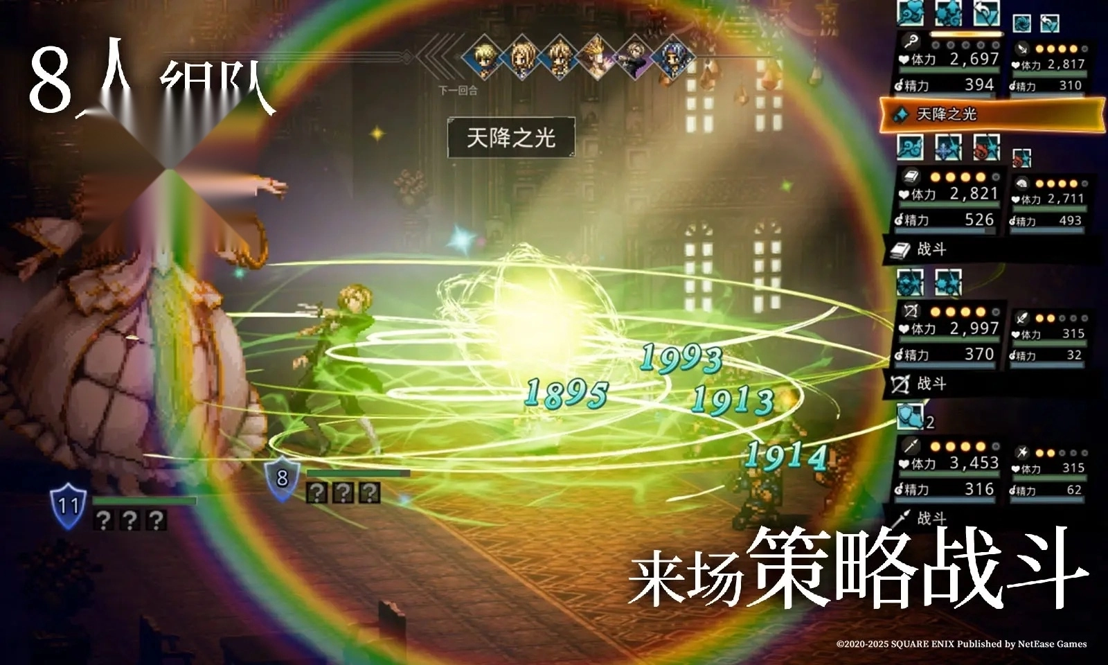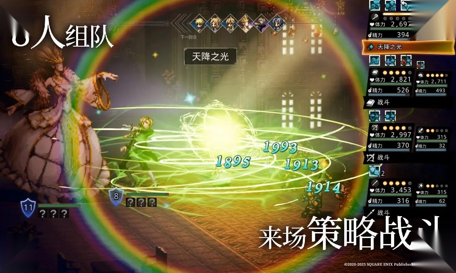 1.在激烈的战斗中使用每个角色的独特能力(路径行动)、技能和天赋。